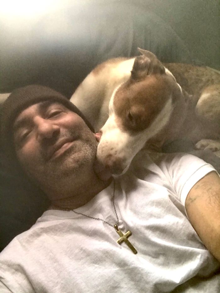 It was an ordinary Thursday on November 19th, 2015 in Puerto Rico. I was walking my 3 small dogs at a nearby park. All of a sudden, this Pit Bull mix walked right up to us and sat down. He was a stray dog living on the street. He was frail and tick infested. I was pretty concerned for my 3 small dogs at that moment. So, I walked my little ones about 20 feet away. The stray dog came right over to us again and just sat down. I started to realize that this dog was no threat at all. He was letting me know that he’s just a boy and couldn’t make it alone anymore. He was at the end of the line.